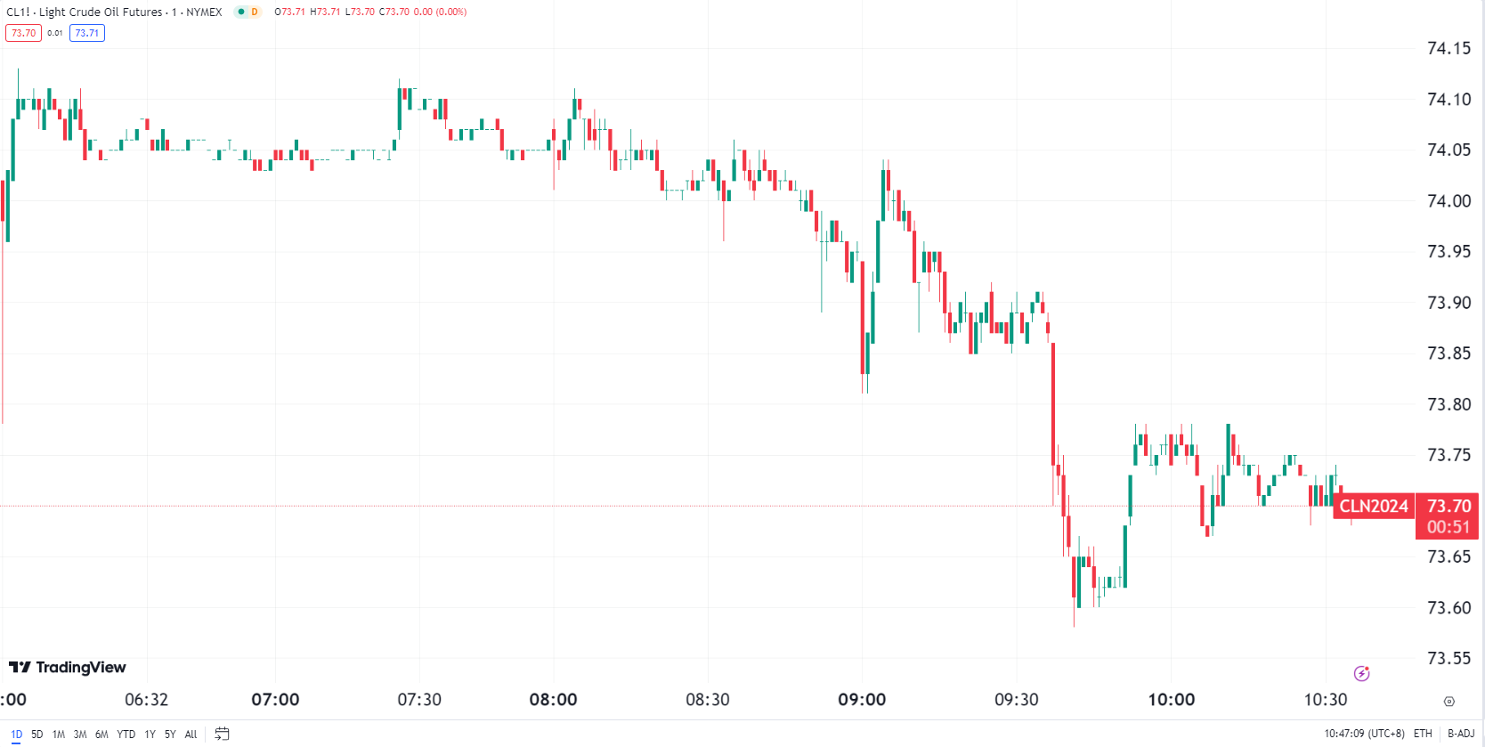 美原油低位徘徊,交投于 74.05 美元/桶附近。美原油油价周一下跌超过 2 美元,触及近四个月来的最低水平,投资者担心需求前景,并将 OPEC+ 复杂的产量决定视为成员国们急于出口更多原油的信号。