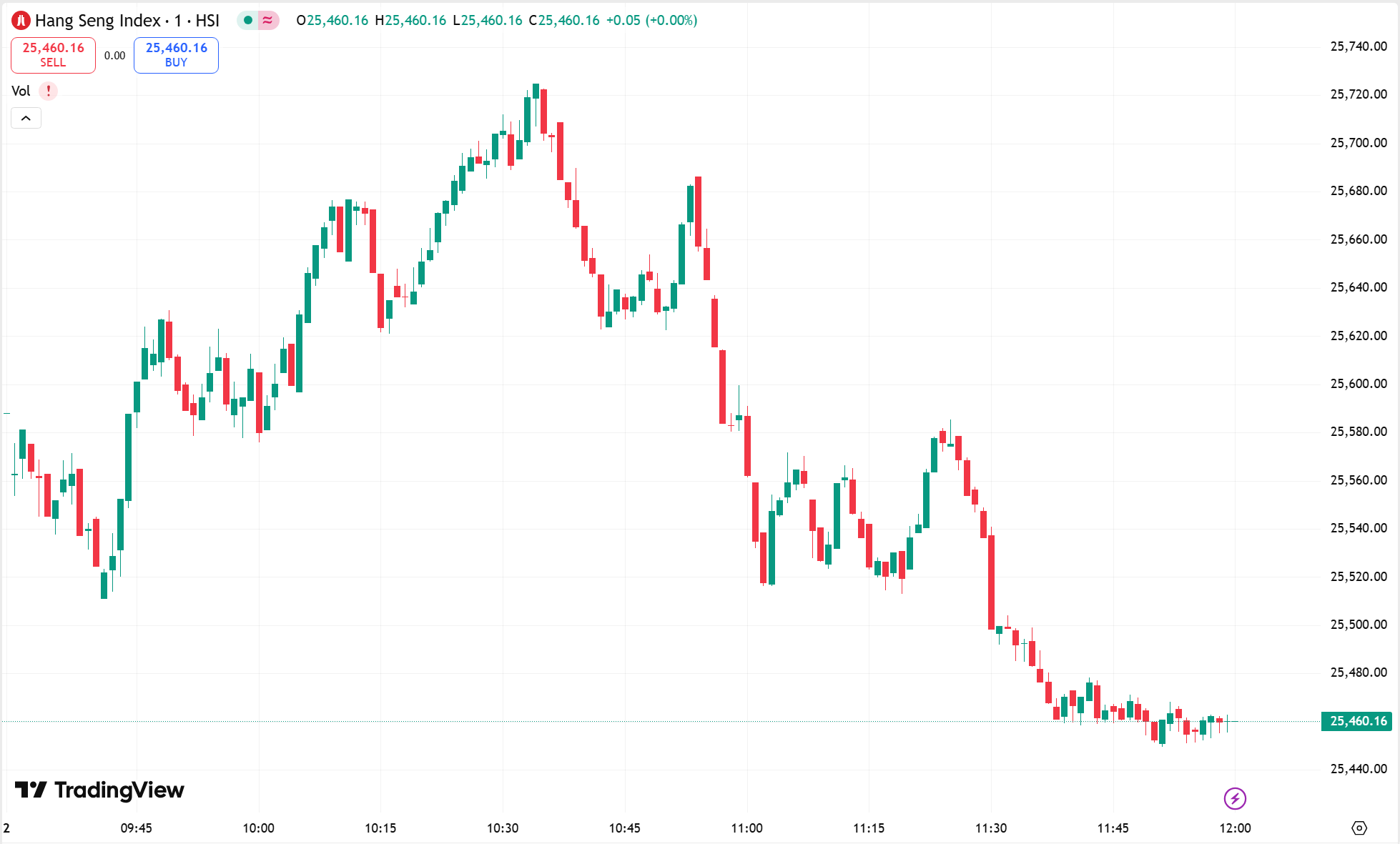 - 恒生指数跌 0.61%,收报 25,460.16 点
