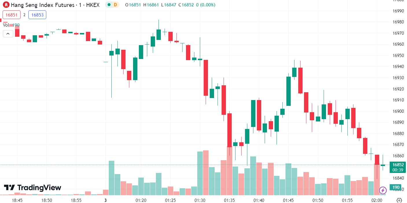 - 恒生指数跌 0.74%,收报 16,806.57 点