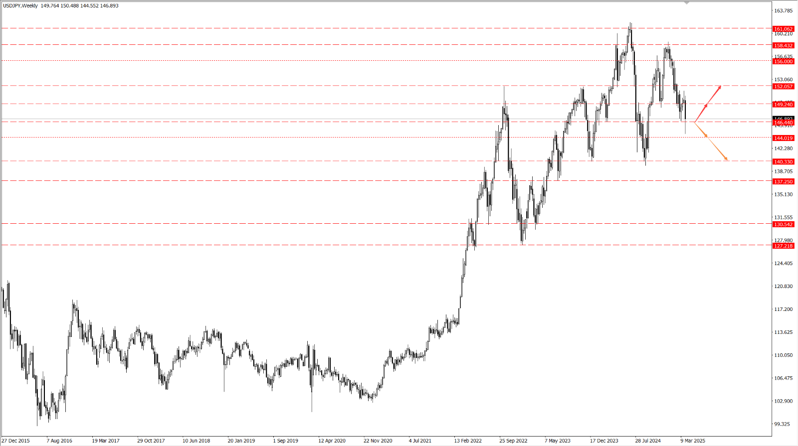 - 上周美元兑日元跌破周多空分届 149.24 一线后大幅下行至 144.01 一线上方企稳回弹,本周关注周多空分届 146.44 一线;