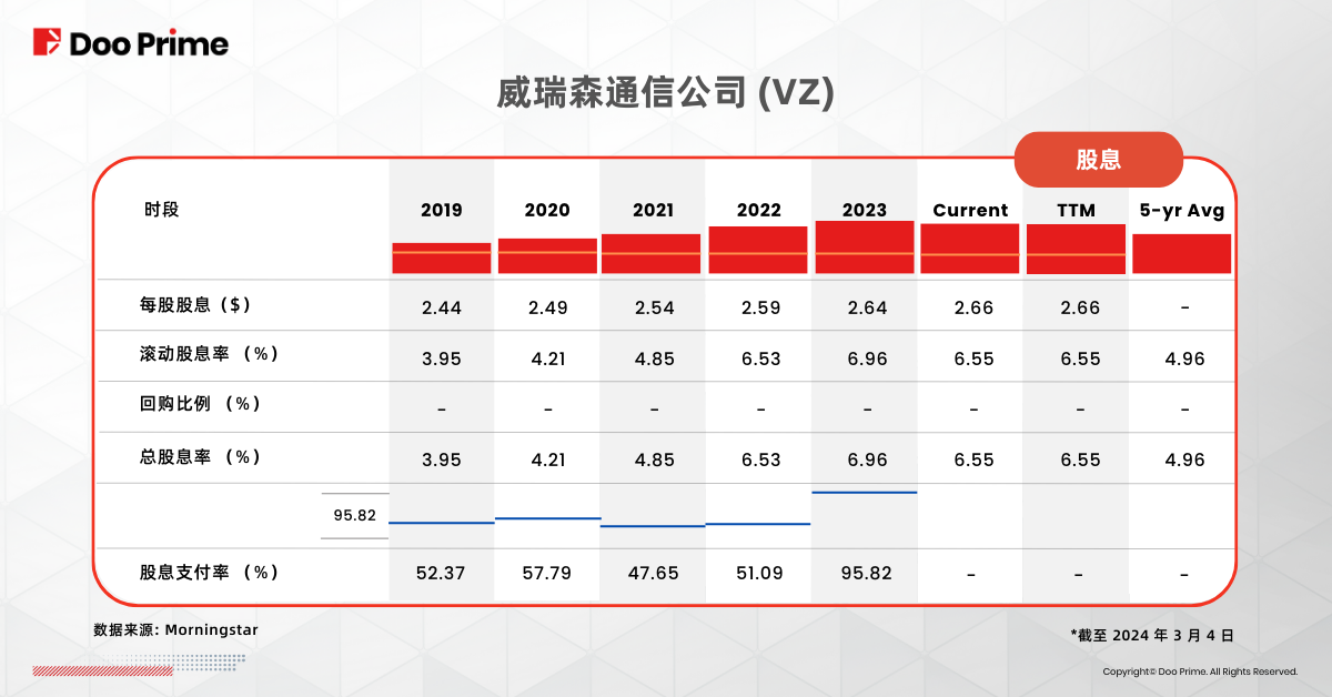 作为在美国市场占据主导地位的电信公司,威瑞森(Verizon)是目前道琼斯指数成份股中股息率最高的公司。凭借逾 15 年的分红纪录,威瑞森已成为寻求稳定收入的投资者的可靠选择。