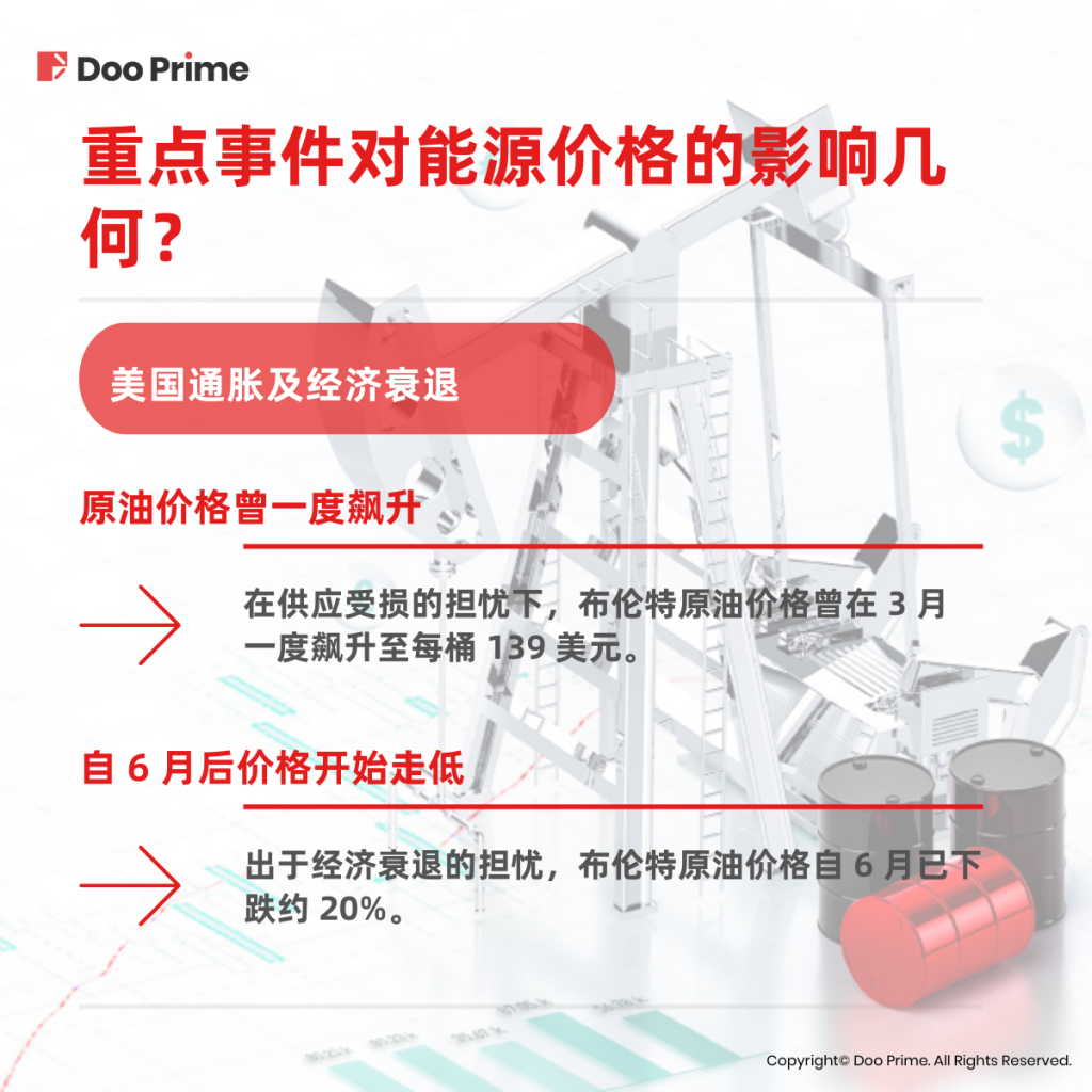 造成原油价格冲高回落的主要原因在于,俄乌战争爆发令市场起初担心石油供应受阻,在供应受损的担忧下,布伦特原油价格曾在 3 月一度飙升至每桶 139 美元。但随后市场又担心经济衰退危机将抑制需求,因而又令原油价格承压。布伦特原油价格自 6 月底便已下跌 20%。