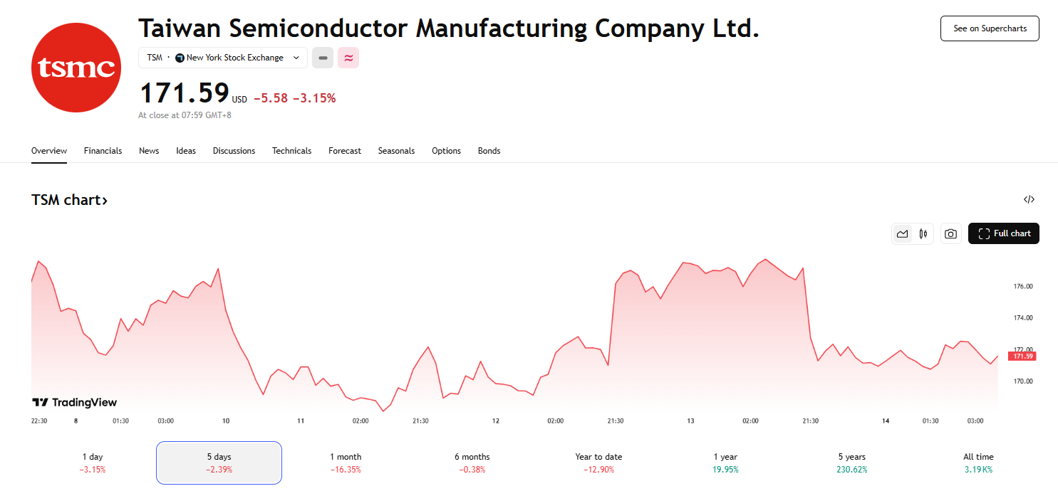 近期,台股遭遇史上最严重的外资抛售,权重股台积电遭投资者冷落。据彭博汇编的交易所数据显示,全球资金已连续 12 个交易日减持台股,累计净卖出 3910 亿新台币(约 119 亿美元)。在此期间,台积电股价累计下跌近 10%,外资抛售 1.55 亿股。