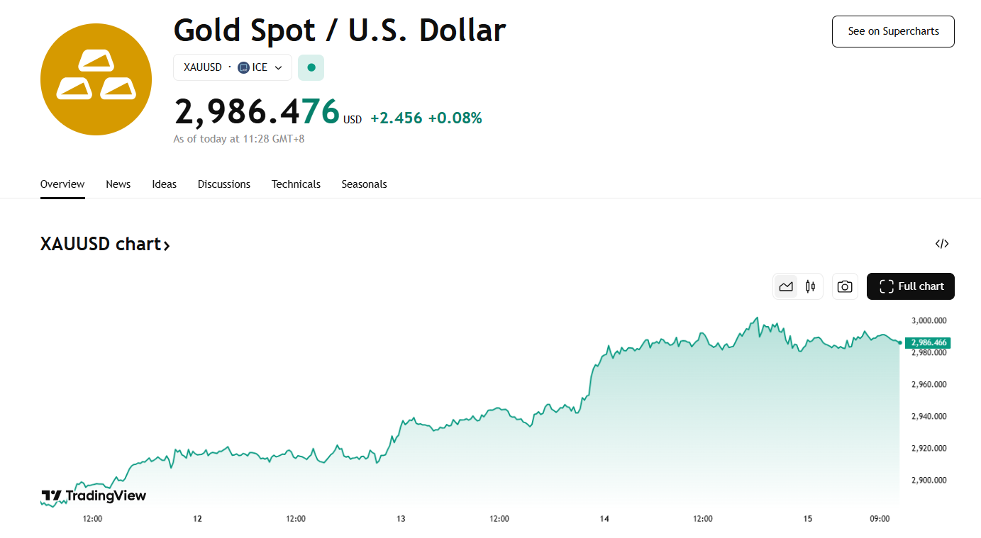黄金一度站上 3000 大关,再创历史新高