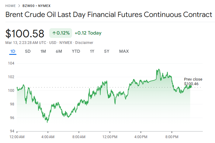 布伦特原油突破每桶 100 美元,市场避险情绪升温