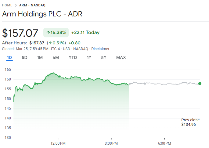 Arm 推出首款 AI 芯片,股价暴涨 15%