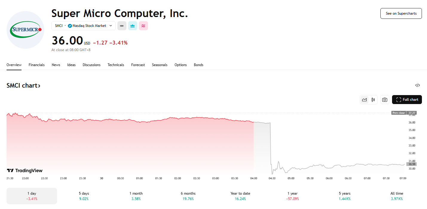 4 月 29 日美股盘后,超微电脑下调第三财季业绩指引,幅度远超预期,使其股价盘后跳水。具体来看,