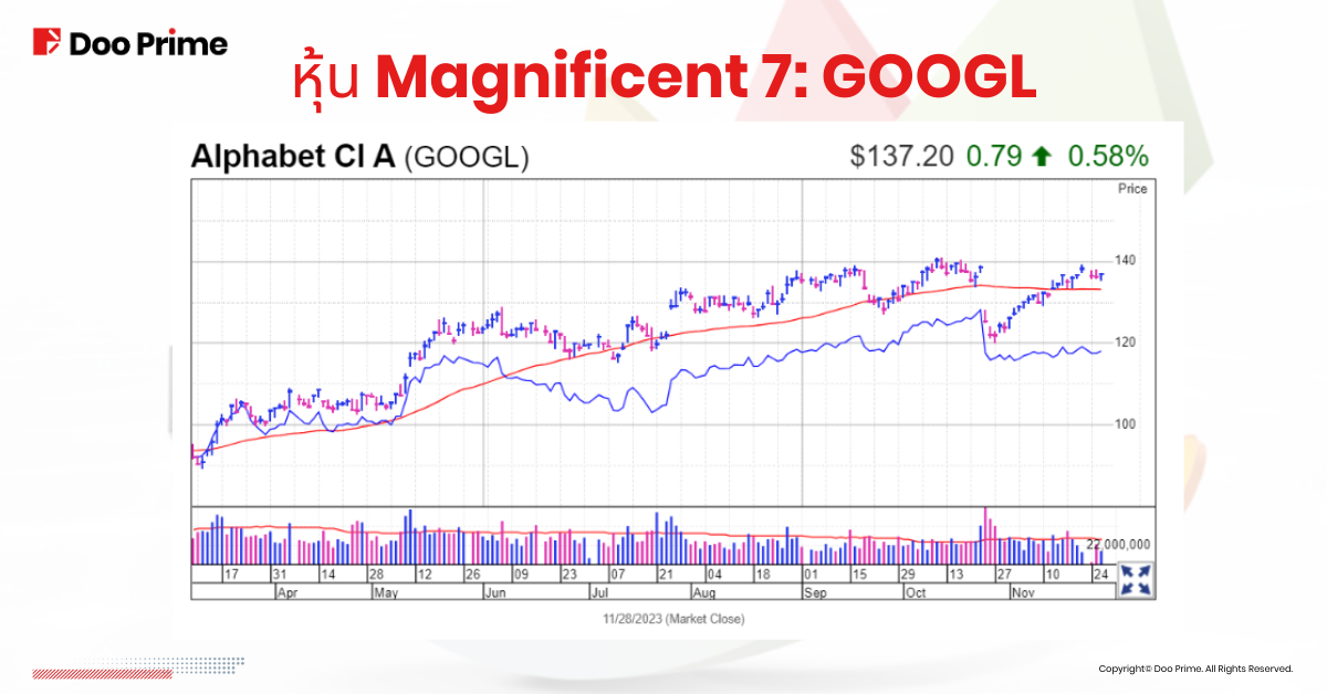 Alphabet เอาชนะตัวเลขการคาดการณ์โดยรวมของผลประกอบการไตรมาสสาม ในเดือนพฤศจิกายน เราได้เห็นหุ้น Google เพิ่มขึ้น 9.1% อย่างไรก็ตาม เหตุการณ์ดังกล่าวเกิดขึ้นหลังจากหุ้นร่วงลง 5.2% ในเดือนตุลาคม ซึ่งเห็นได้จากการขาดทุน 9.9% ในสัปดาห์สิ้นสุดวันที่ 27 ตุลาคม อันเป็นผลมาจากการเติบโตของ Google Cloud ที่ไม่น่าพอใจนัก