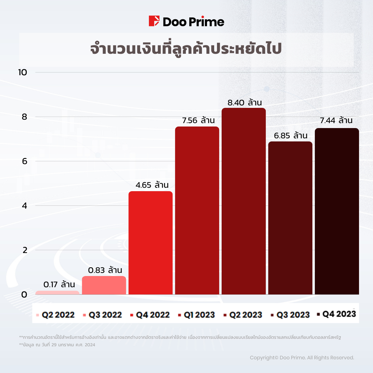 อย่างไรก็ตาม แม้ว่าไตรมาสจะอ่อนแอลง แต่แคมเปญ Doo Prime Swap-Free และ Swap Reduction ยังมีแนวโน้มที่ดีจนถึงปัจจุบัน และจบด้วยการยกเว้น Swap รวมมูลค่า 7.438 ล้านดอลลาร์สหรัฐ
