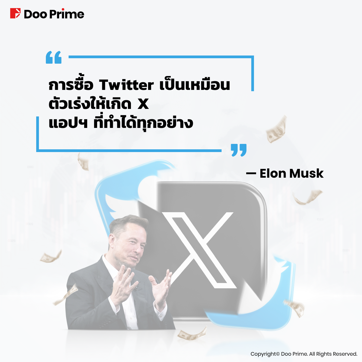 “การซื้อ Twitter เป็นเหมือนตัวเร่งให้เกิด X แอปที่ทำได้ทุกอย่าง” – Elon Musk เปิดเผยวิสัยทัศน์ที่ทะเยอทะยานของเขาต่อยักษ์ใหญ่ด้านโซเชียลมีเดียในระหว่างการซื้อกิจการของ Twitter วันนี้ Twitter เข้าใกล้วิสัยทัศน์ของ Musk ไปอีกก้าวหนึ่ง เมื่อวันที่ 24 กรกฎาคม Twitter ได้มีการประกาศอำลาโลโก้ “Blue Bird” อย่างเป็นทางการและเริ่มต้นการเดินทางครั้งใหม่ด้วย “X” ขาวดำ