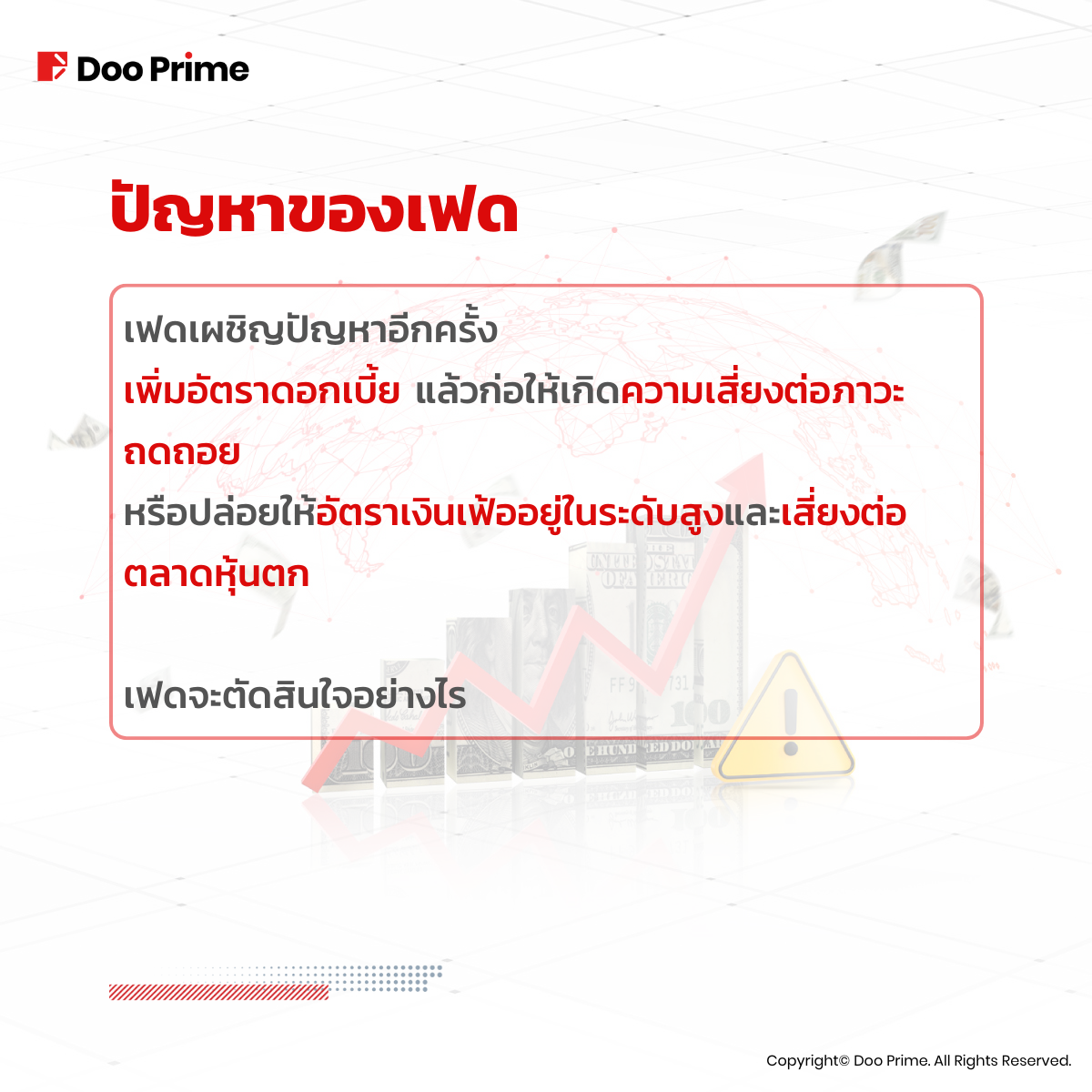 Fed กลับมาอยู่ในจุดที่ยากลำบากอีกครั้ง เนื่องจากต้องตัดสินใจว่าควรขึ้นอัตราดอกเบี้ยอีกเพื่อลดอัตราเงินเฟ้อลงสู่เป้าหมาย 2% แม้ว่าอาจจะทำให้เกิดภาวะเศรษฐกิจถดถอยหรือไม่? หรือควรปล่อยให้อัตราเงินเฟ้อยังคงอยู่ในระดับสูงเพื่อปกป้องตลาดหุ้น?