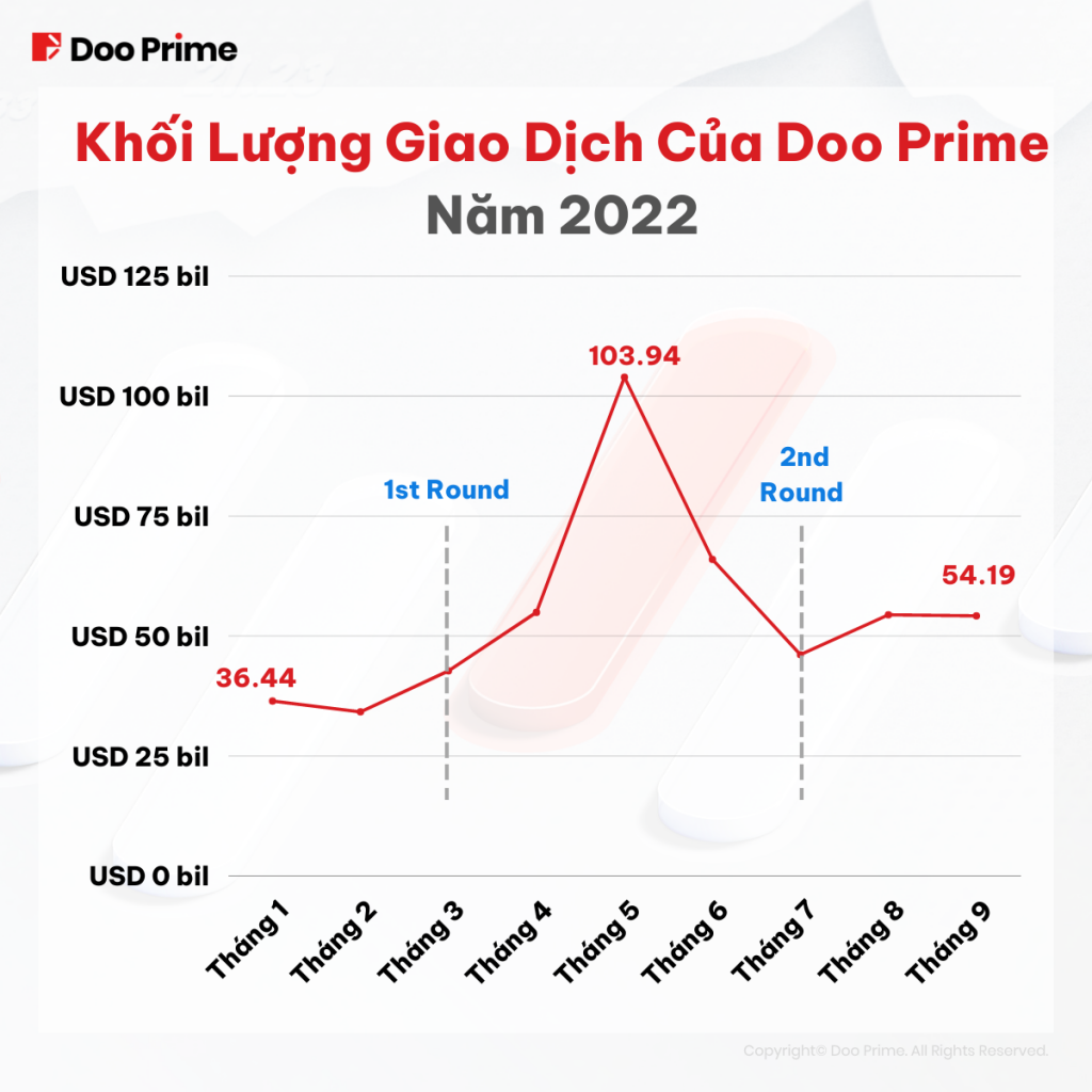 Bất chấp tất cả các sự kiện xảy ra đồng thời, khối lượng giao dịch của Doo Prime vẫn tăng đều đặn kể từ đầu năm. Từ biểu đồ bên dưới, có thể nhận thấy một sự tăng trưởng đáng kể đã bắt đầu xuất hiện kể từ khi vòng đầu tiên của chiến dịch Miễn Giảm Phí Swap chính thức khởi động. Đáng chú ý, khối lượng giao dịch trong tháng 5 tăng vượt trội, trong khi đó, khối lượng giao dịch trong những tháng còn lại vẫn giữ ở mức ổn định.