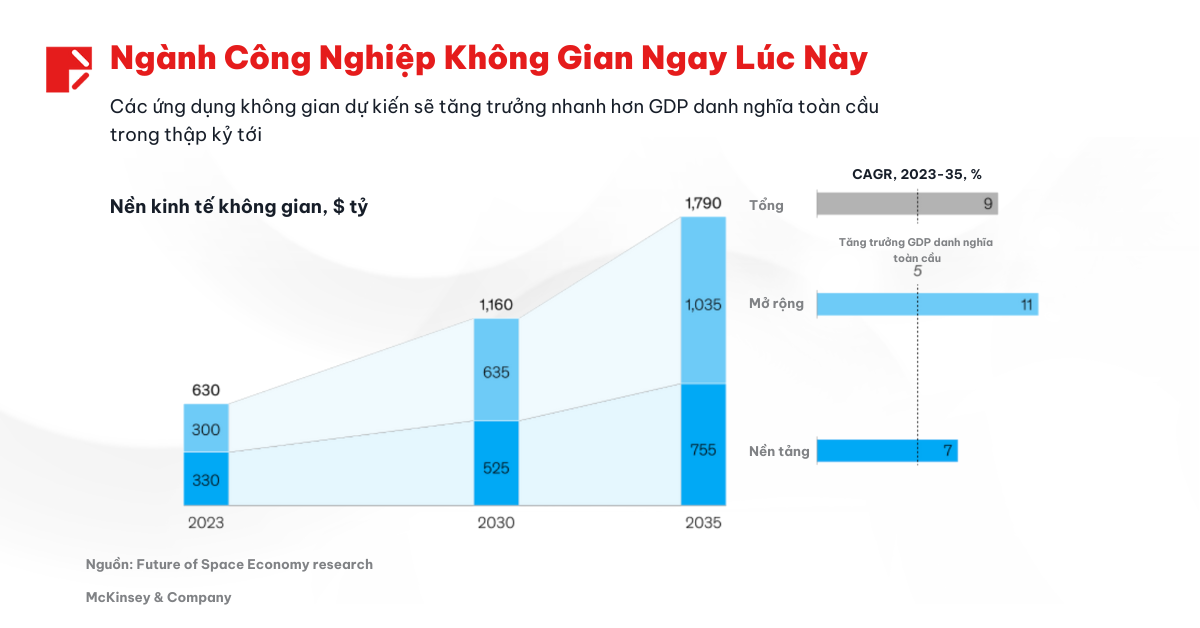 Báo cáo “Space: The $1.8 trillion opportunity for global economic growth” của McKinsey & Company sẽ là nguồn dữ liệu quan trọng để chúng ta có được cái nhìn chi tiết nhất về ngành công nghiệp này.
