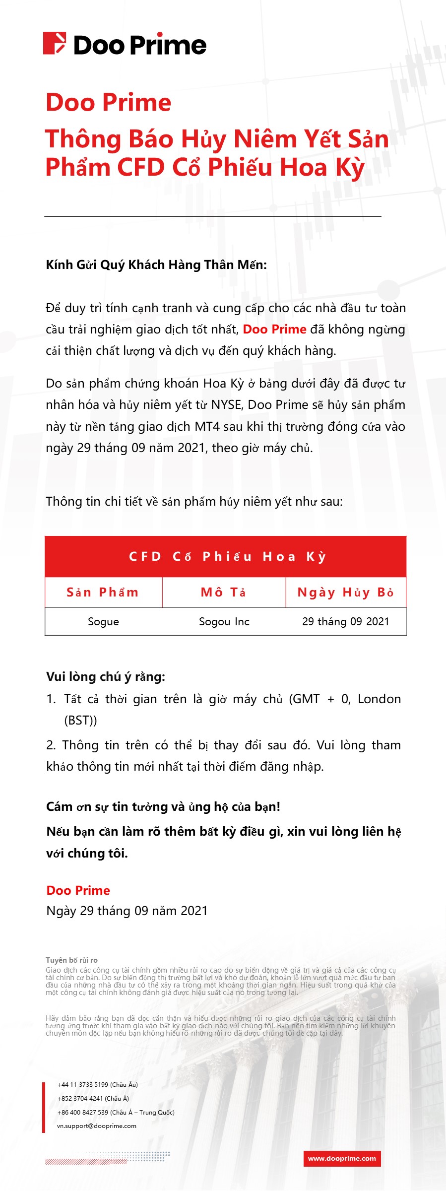 Doo Prime Thông Báo Hủy Niêm Yết Sản Phẩm CFD Cổ Phiếu Hoa Kỳ